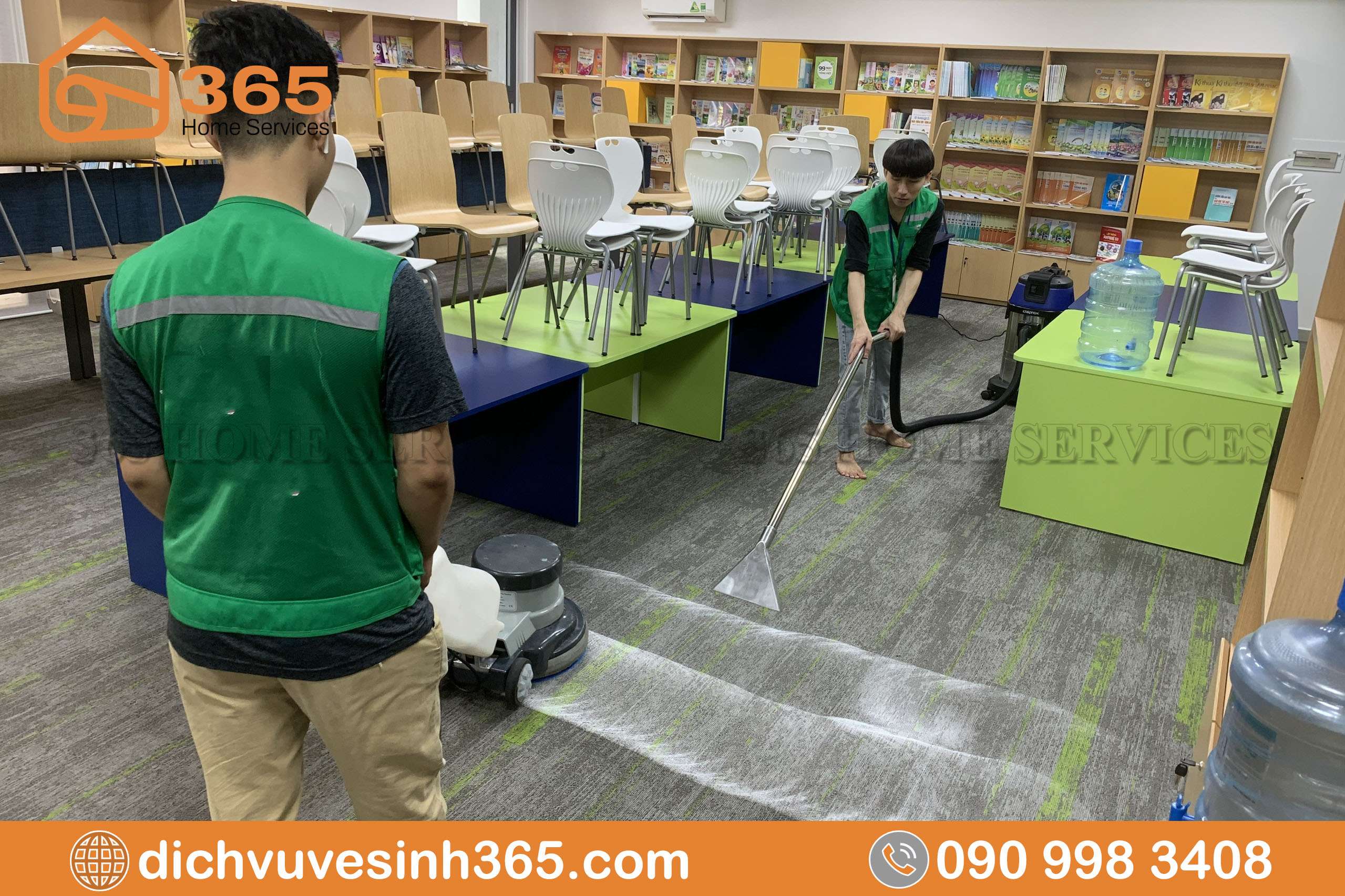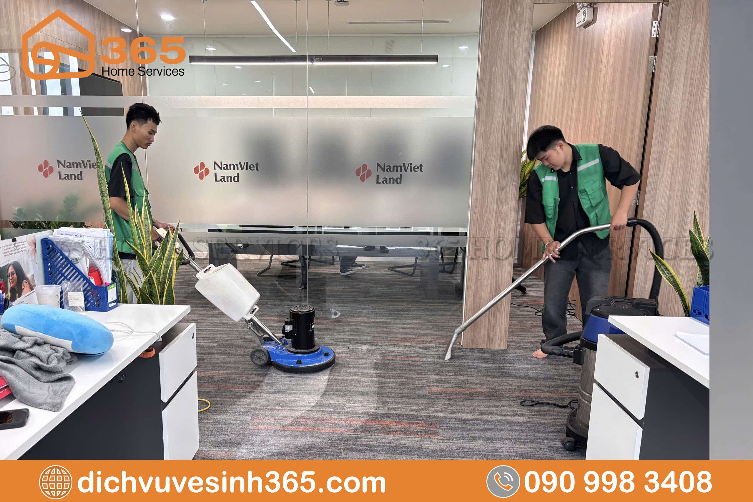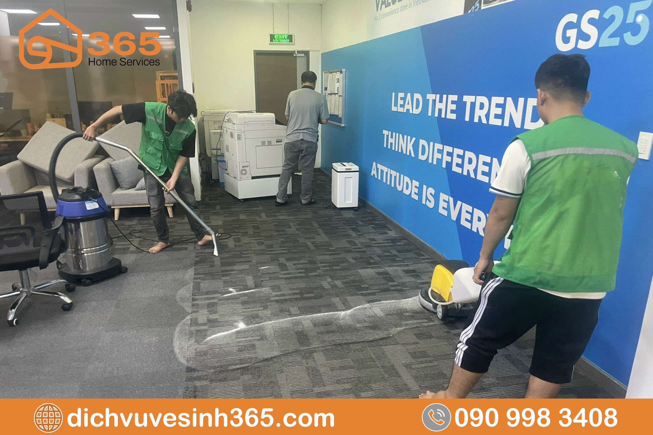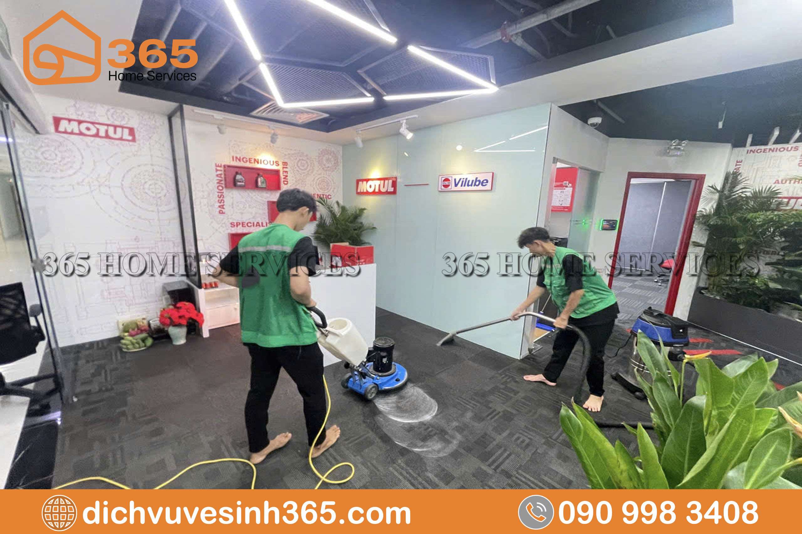👉 Vệ Sinh 365 làm việc ngoài giờ hành chính hoặc cuối tuần để không ảnh hưởng đến hoạt động văn phòng. Quy trình nhanh gọn giúp thảm khô nhanh để dùng lại.